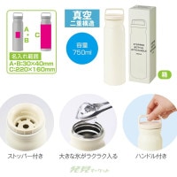 マグカップ付きプッシュ開閉式真空ステンレスボトル(色選択)